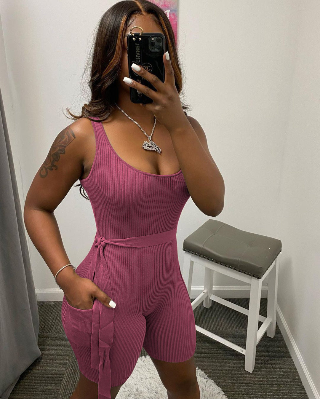 Deze dames effen kleur ribbed jumpsuit met korte mouwen sluit mooi aan op het lichaam en volgt je vormen zonder te knellen