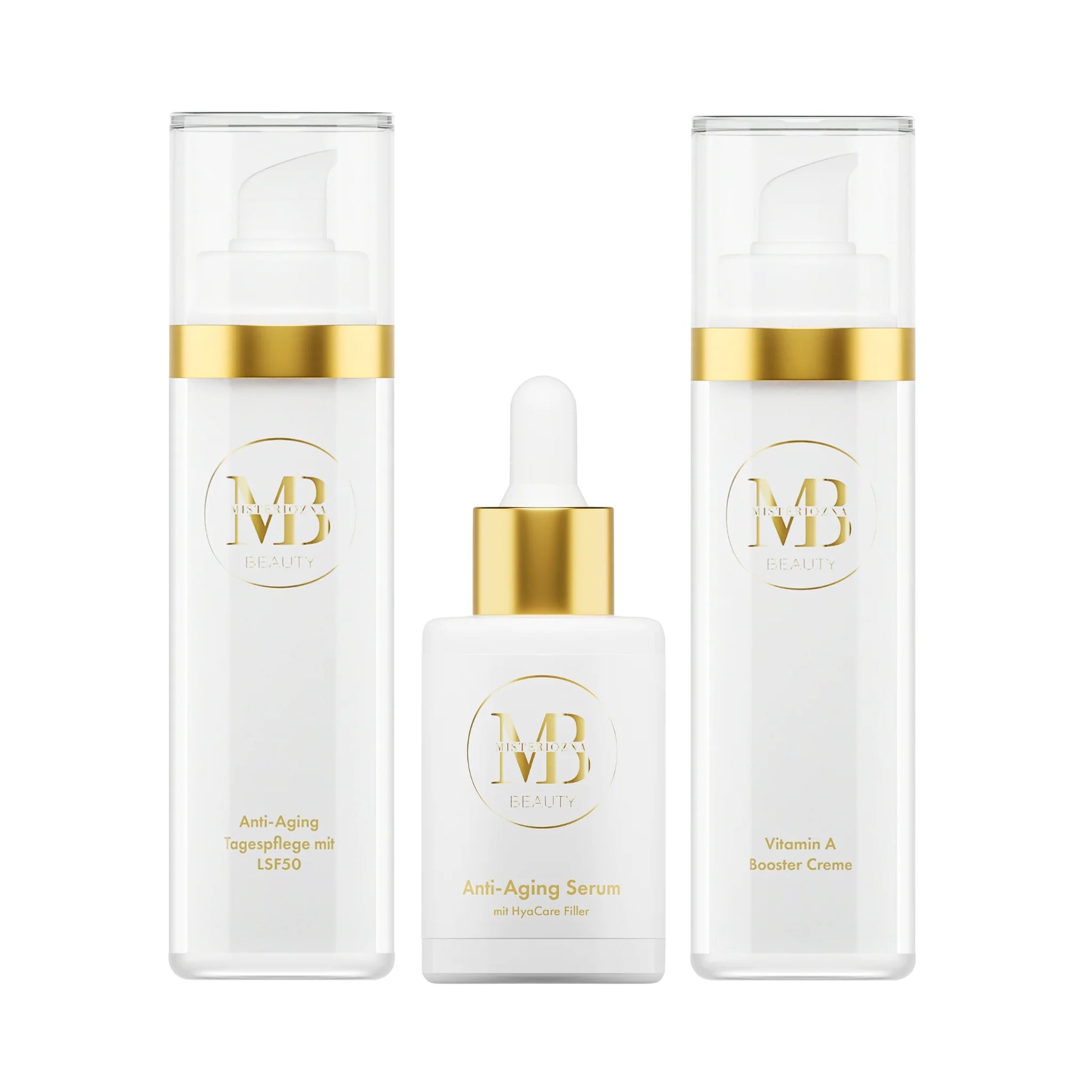 Aanvullend bevat de box een effectief Anti-Aging serum dat de huid verstevigt en een Vitamin A booster nachtcrème die de cel vernieuwing stimuleert en rimpels vermindert. Een deskundige verzorgingsroutine voor zichtbaar jongere huid.