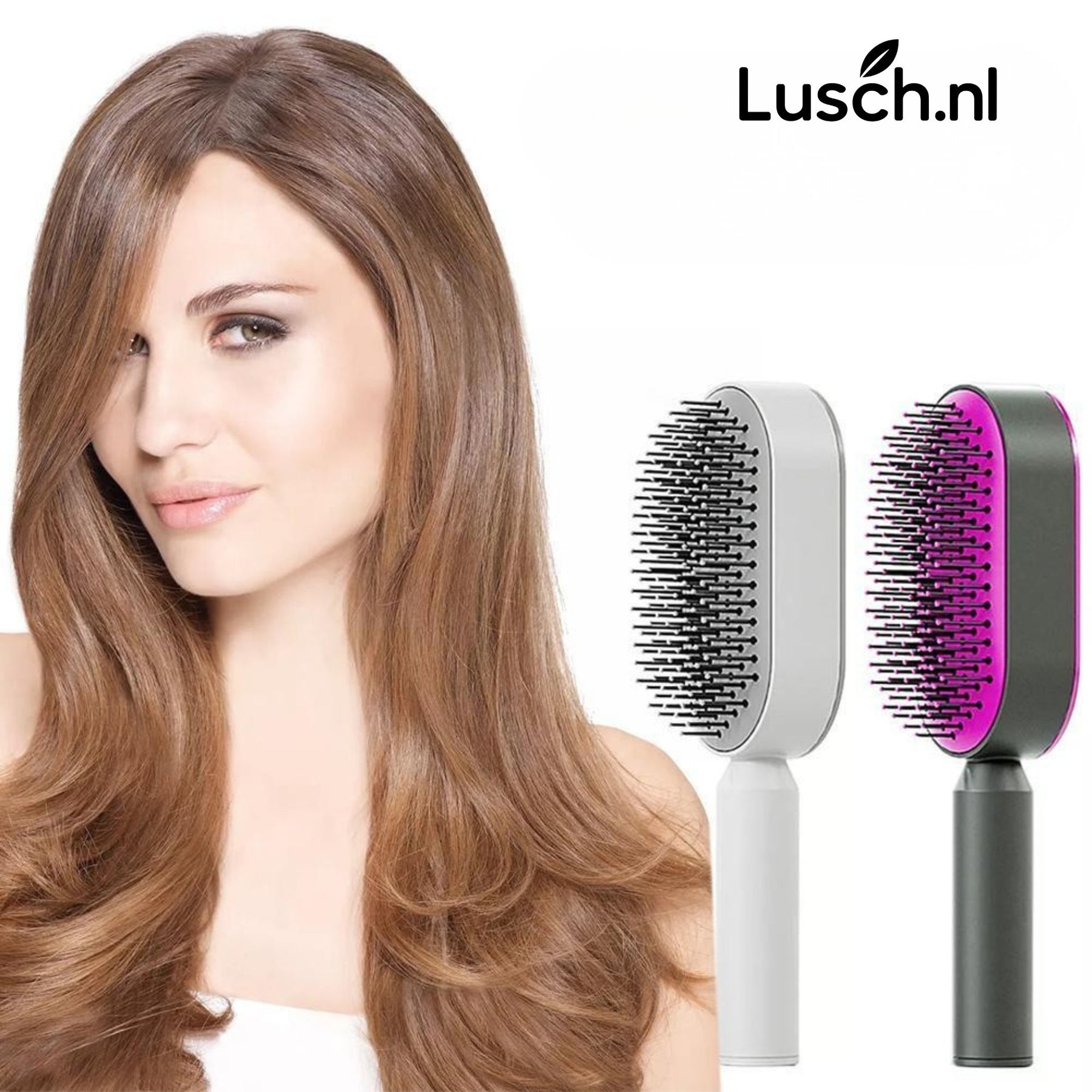 Upgrade je haarverzorging—kies de Self-Cleaning 3D Scalp Massage Brush voor pijnvrij ontklitten en een glanzende finish.